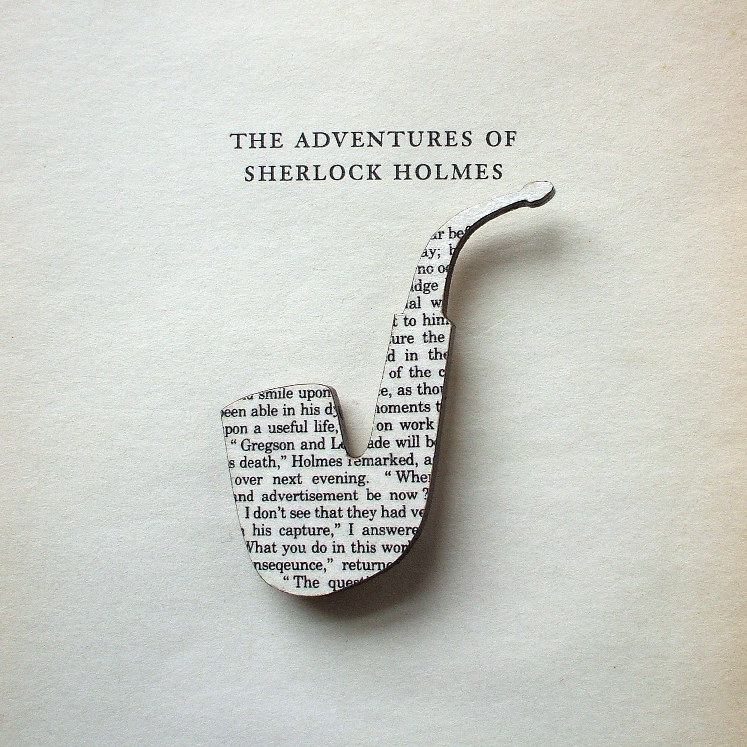 He visto estos broches en Papel en blanco, están hechos con madera sobre la que se ha pegado parte de una página de la obra a la que hace referencia.